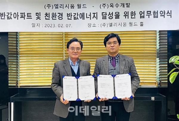 ㈜엘리시움월드는 지난 7일 과학기술·자원 개발 등 업무 영역을 확대중인 ㈜옥수개발과 주거안정과 환경보호, 에너지비용 절감 등의 공동목표를 달성하기 위한 ESG경영 실천 협약을 맺었다고 9일 밝혔다.